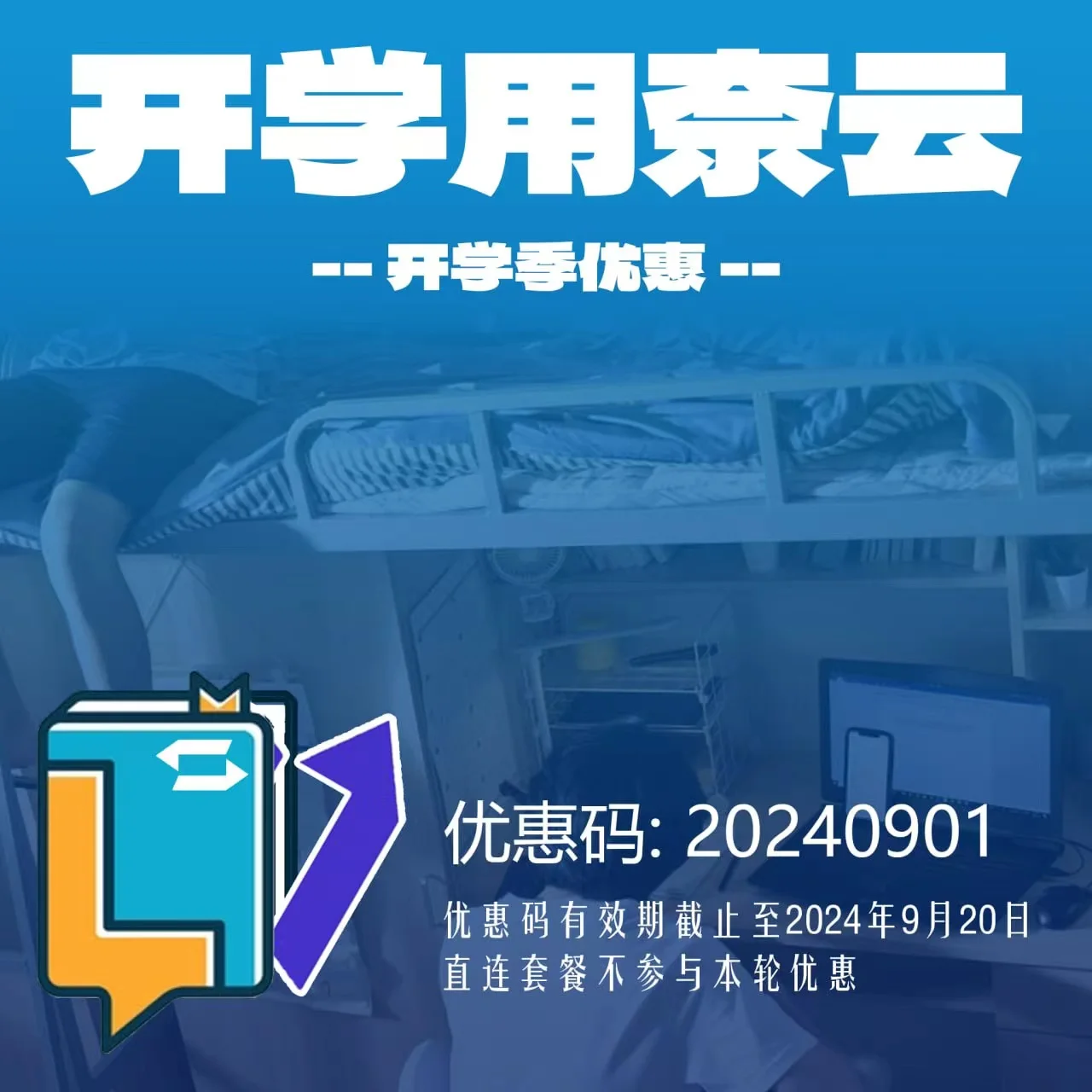 🎁 这是送给各位学子们的一份新学期小礼物。来自奈云的八折优惠码:20240901,新的学期、新的气象,新的成绩创造新的高度。