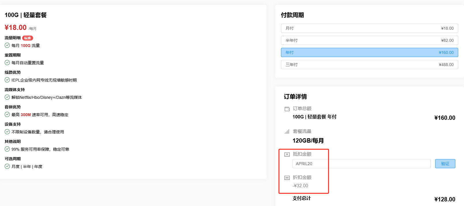 🎯 年付及以上套餐: 8折优惠,优惠码:APRIL20
