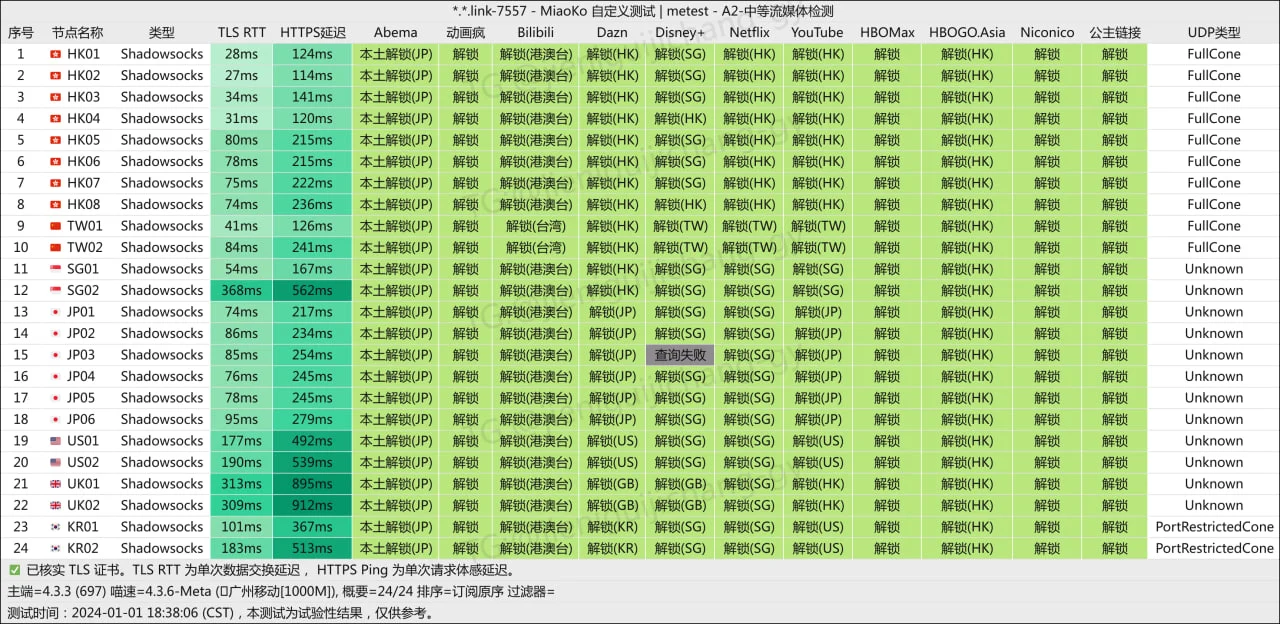 RioLu精灵学院机场运营始于 2023 年,一家小而精的翻墙机场,支持 Shadowsocks、Shadowsocks-2022、Vlees+Reality、Hysteria 和 TUIC v5 多种协议,公网隧道中转网络和直连节点,属于性价比机场之一,对 Netflix、Disney+ 流媒体解锁服务也还不错,性价比机场之一。机场有定制的 Emby 服务器和 ChatGPT 镜像站。