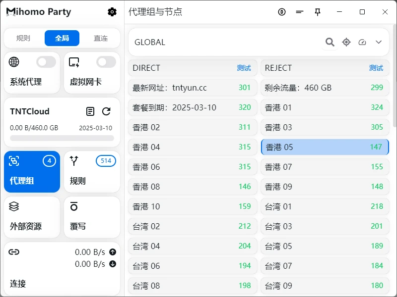 - TNT VIP3:¥80/月,每月 460G 流量